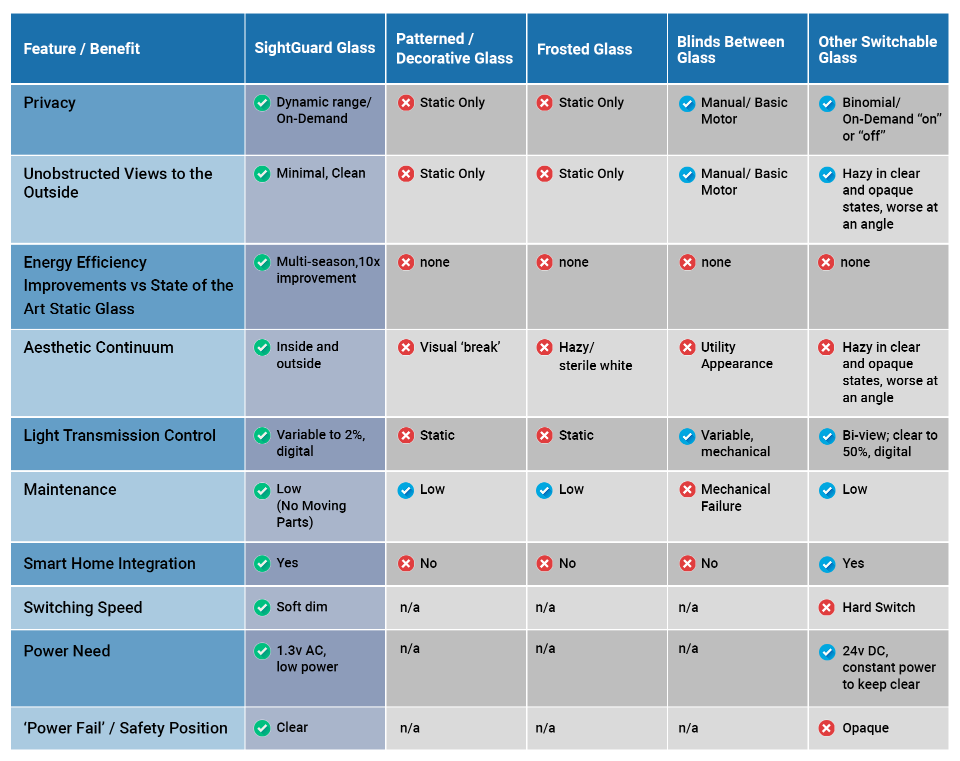 - The residential home market’s leading solar heat gain product with a 10x improvement in solar heat gain control versus state-of-the-art static glass.